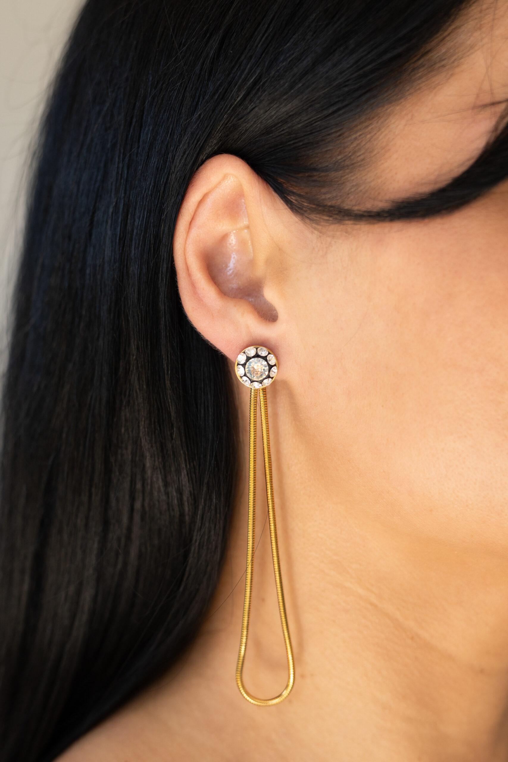 - Nešiojami 2 būdais (kasdien tik kristalas į ausį, vakarui kristalas su prailginimu)